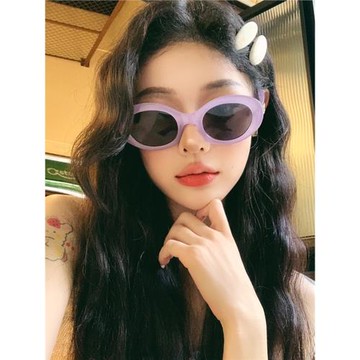 復古圓框墨鏡紫色多巴胺辣妹眼鏡偏光防紫外線近視太陽鏡女方圓臉