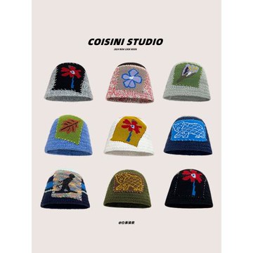 點我下載韓國小眾設計師花朵貼布針織漁夫帽子秋冬宋旻浩同款防寒保暖盆帽