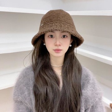 羊羔毛漁夫帽女秋冬加厚毛絨氣質百搭簡約防寒水桶帽素顏遮臉盆帽