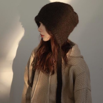 大頭圍毛線帽子女秋冬保暖毛絨針織護耳帽學生混色可愛綁帶包頭帽