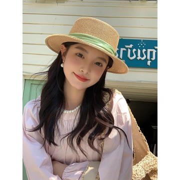 【我的頭不圓】赫本風法式平頂草帽子女海邊度假遮陽防曬帽大頭圍