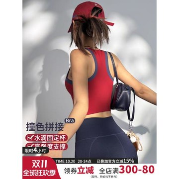 高強度防震運動內衣女一體式撞色工字健身文胸訓練跑步瑜伽背心新