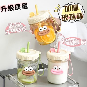 創意水杯可愛玻璃杯高顏值杯子女新款2024吸管杯茶水分離杯牛奶杯