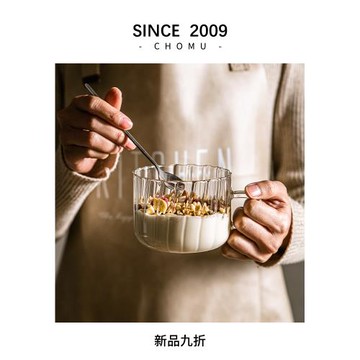 大容量玻璃早餐杯牛奶燕麥杯可微波爐酸奶沙拉碗高硼硅水杯帶把手