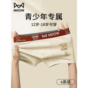 貓人青少年內褲男生發育期學生初中高中生純棉平角內褲大童四角褲
