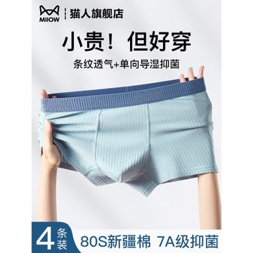 貓人男士內褲純棉7a抗菌透氣四角褲大碼男生2025新款全棉平角褲頭