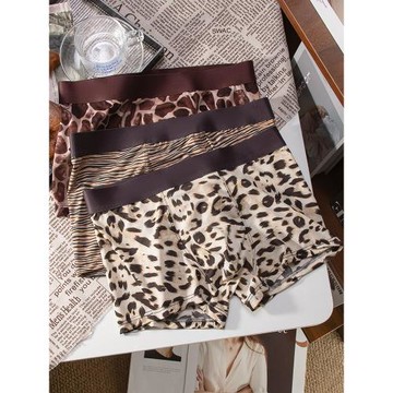 狂野男人~豹紋冰絲男士內褲純棉舒適透氣時尚性感中腰四季平角褲
