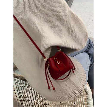 今年流行紅色百搭小包包女士2025新款法式小眾設計單肩斜挎水桶包