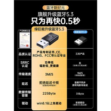 綠聯藍牙適配器接收電腦usb模塊臺式主機發射5.3驅動連接無線耳機