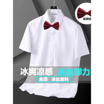 短袖冰絲涼感白襯衫伴郎服兄弟裝婚禮襯衣西式禮服兄弟團男結婚