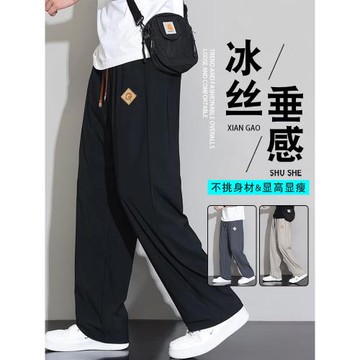 休閑褲子男款薄夏天寬松直筒闊腿褲男士運動美式男生夏季冰絲長褲