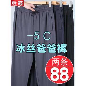 爸爸褲子夏季薄款冰絲褲中老年男士休閑褲老人夏裝男松緊速干男褲