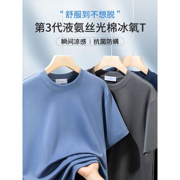 液氨冰氧絲光棉短袖T恤男2025夏季冰絲涼感高端半袖純白色上衣服