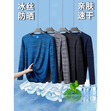 防曬速干衣長袖T恤男士寬松圓領大碼打底衫夏季冰絲透氣吸濕排汗t