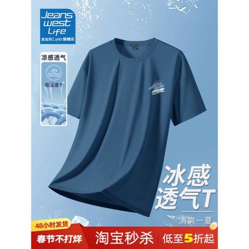 真維斯LIFE冰絲男t恤夏季新款男士速干透氣短袖男款寬松運動半袖M