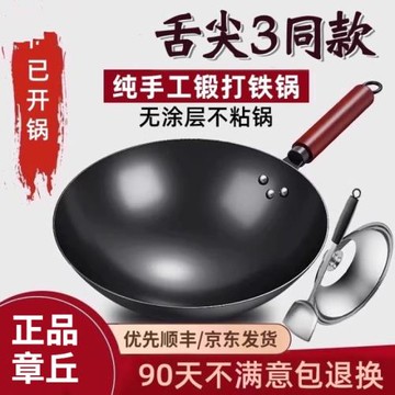 章丘炒菜鍋傳統鐵鍋旗艦老式炒鍋家用不粘鍋無涂層燃氣灶適用