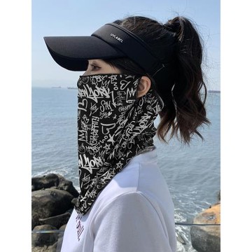摩托車防曬面罩男女全臉冰絲掛耳護脖子神器面巾遮陽臉罩騎行面紗