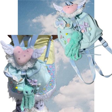 (免運)日光欲原創小眾設計雙肩包Y2K千禧少女淺春系可愛翅膀通勤小背包