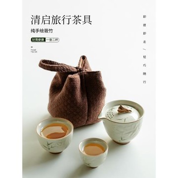 極素如虎添翼旅行茶具家用一壺二杯陶瓷套裝便攜式快客杯帶收納包