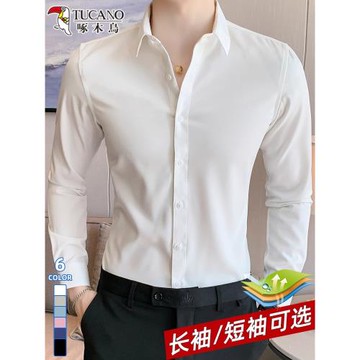 (免運)啄木鳥白襯衫男款長袖夏季新款免燙抗皺冰絲襯衣男士商務休閑短袖