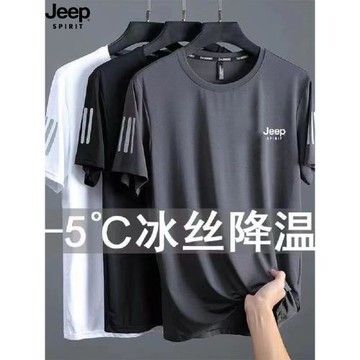 (免運)JEEP吉普冰絲短袖t恤男夏季薄款速干上衣運動休閑寬松大碼半袖衫