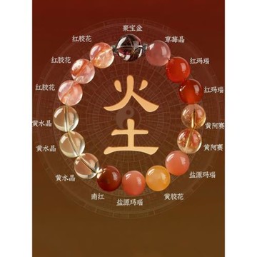(免運)五行缺火補火喜用木手鏈火晶多寶升級木屬性能量平衡紅色飾品男女