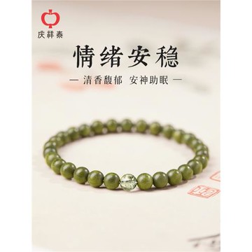 (免運)慶祥泰天然綠檀木手串女款旗艦店綠幽靈手鏈檀香男木質五行補木質