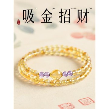 (免運)普陀山天然黃塔晶手串女黃紫水晶招財轉運珠多圈手鏈輕奢精致禮物