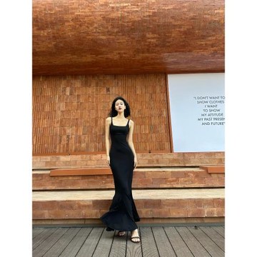 法式純欲吊帶連衣裙女夏季2025新款修身開叉氣質高級感收腰長裙子