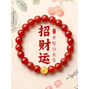 (免運)普陀山天然紅瑪瑙手串男女招財暴富黃水晶手鏈轉運珠手飾小眾禮物