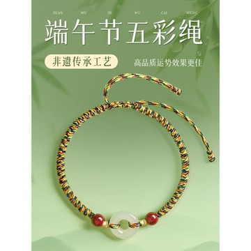 (免運)2025新款端午節五彩繩子手環手工編織兒童手繩和田玉平安扣手鏈女