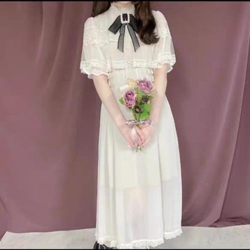 (免運)連衣裙日系清楚系罩紗斗篷半袖留洋千金大小姐法式連衣裙