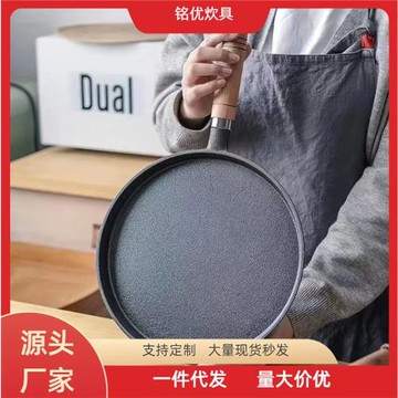 鑄鐵平底鍋生鐵煎鍋無涂層不粘煎餅手抓餅烙餅鍋鏊子披薩烤盤工廠