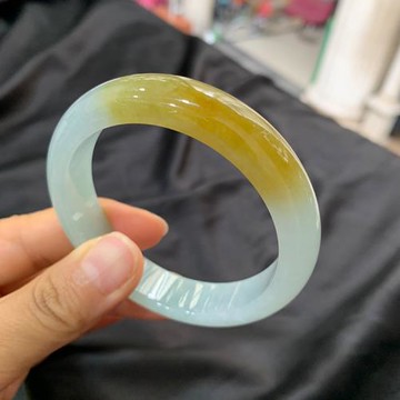 緬甸黃翡翠手鐲半山半水飄花細圓條黃翡玉手鐲冰糯種雞油黃玉鐲子