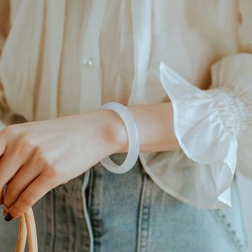 天然冰種白瑪瑙手鐲少女荔枝凍白月光玉鐲玉髓翡翠鐲子送女友禮物