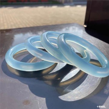巴西冰種玉髓天青色湖水藍復古圓條手鐲 瑪瑙水潤淺藍色原色玉鐲