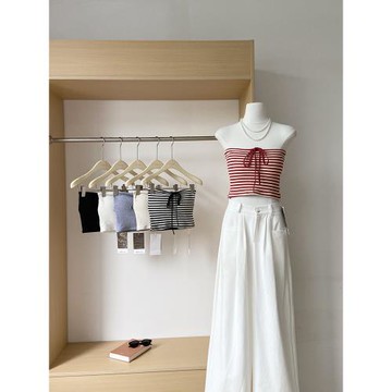 拼色條紋系帶自帶胸墊短款抹胸女2025夏季新款韓系甜辣背心上衣潮