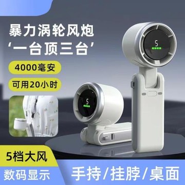 2025款數顯199檔高速手持冰敷制冷小風扇迷你大風掛脖折疊桌面USB