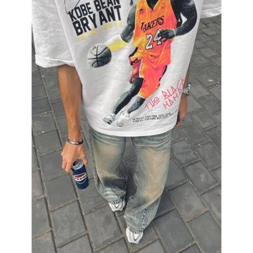 美式復古vintage設計感籃球球星科比人像短袖t恤歐美高街寬松半袖