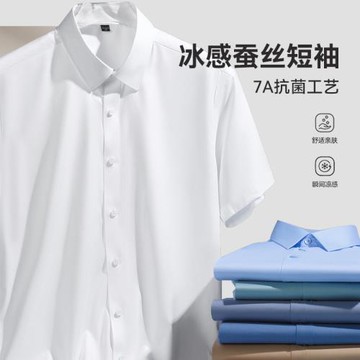 7A抗菌桑蠶絲短袖男士襯衫純色職業商務休閑男裝竹纖維冰絲襯衣