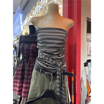 美式辣妹撞色條紋抹胸背心女裝夏季海邊度假短款修身無袖純欲上衣