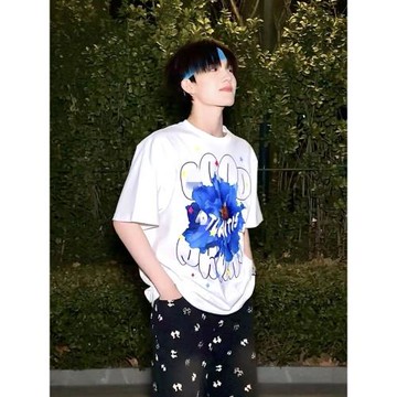 蘇新皓同款衣服藍海花朵印花輕奢時尚高級感短袖T恤男女情侶夏裝