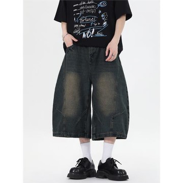 BOYUE帛躍夏季廓形七分牛仔褲水洗解構街頭百搭痞帥男潮闊腿短褲