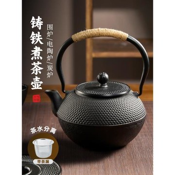 捷安璽鐵壺煮茶壺茶水分離鑄鐵茶壺泡茶專用可明火圍爐戶外燒水壺