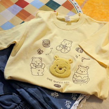 日系小熊印花夏季t恤女2025新款學院風寬松顯瘦學生短袖上衣體恤