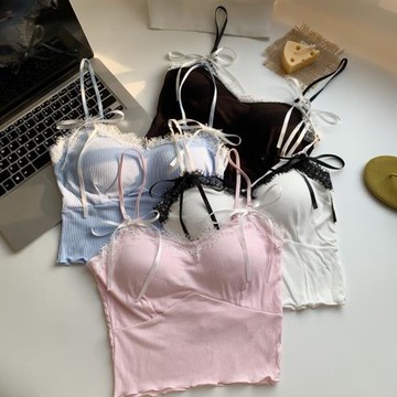 韓國東大門新款性感氣質女人味蕾絲邊飄帶內搭外穿吊帶背心女上衣