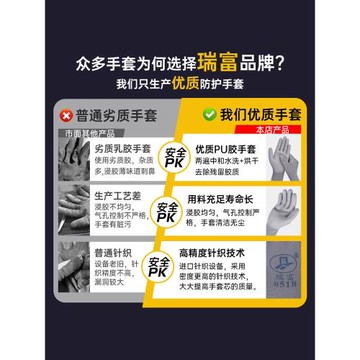 瑞富518勞保手套PU涂掌涂指薄款透氣防靜電防滑耐磨浸膠舒適男女