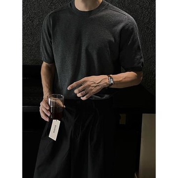 MRCYC簡約風針織短袖T恤男士夏季寬松圓領上衣韓系高級感通勤半袖