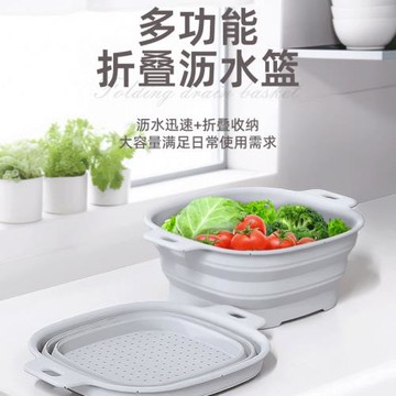 多功能硅膠折疊瀝水籃圓形洗菜籃廚房蔬菜水果洗菜盆濾水籃耐高溫