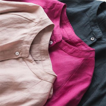 細支純亞麻寬松襯衫 柔軟光澤筋骨感 簡約文藝立領七分袖防曬上衣